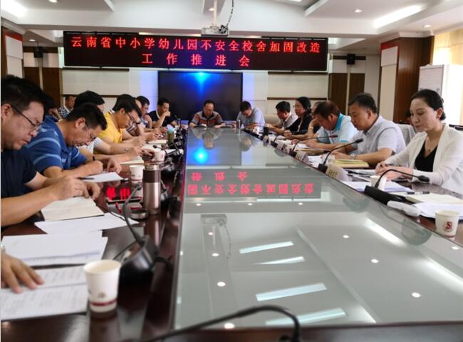 為貫徹落實中央和云南省委、省政府主要領(lǐng)導(dǎo)對中小學(xué)危房改造的指示精神,加快推進中小學(xué)幼兒園不安全校舍加固改造工作,2018年7月28日上午,云南省中小學(xué)幼兒園不安全校舍加固改造工作推進會議在省教育廳召開。省教育廳、省住房和城鄉(xiāng)建設(shè)廳以及16個州(市)教育局、住建局分管領(lǐng)導(dǎo),兩廳相關(guān)處室負(fù)責(zé)人共計40余人參加會議。